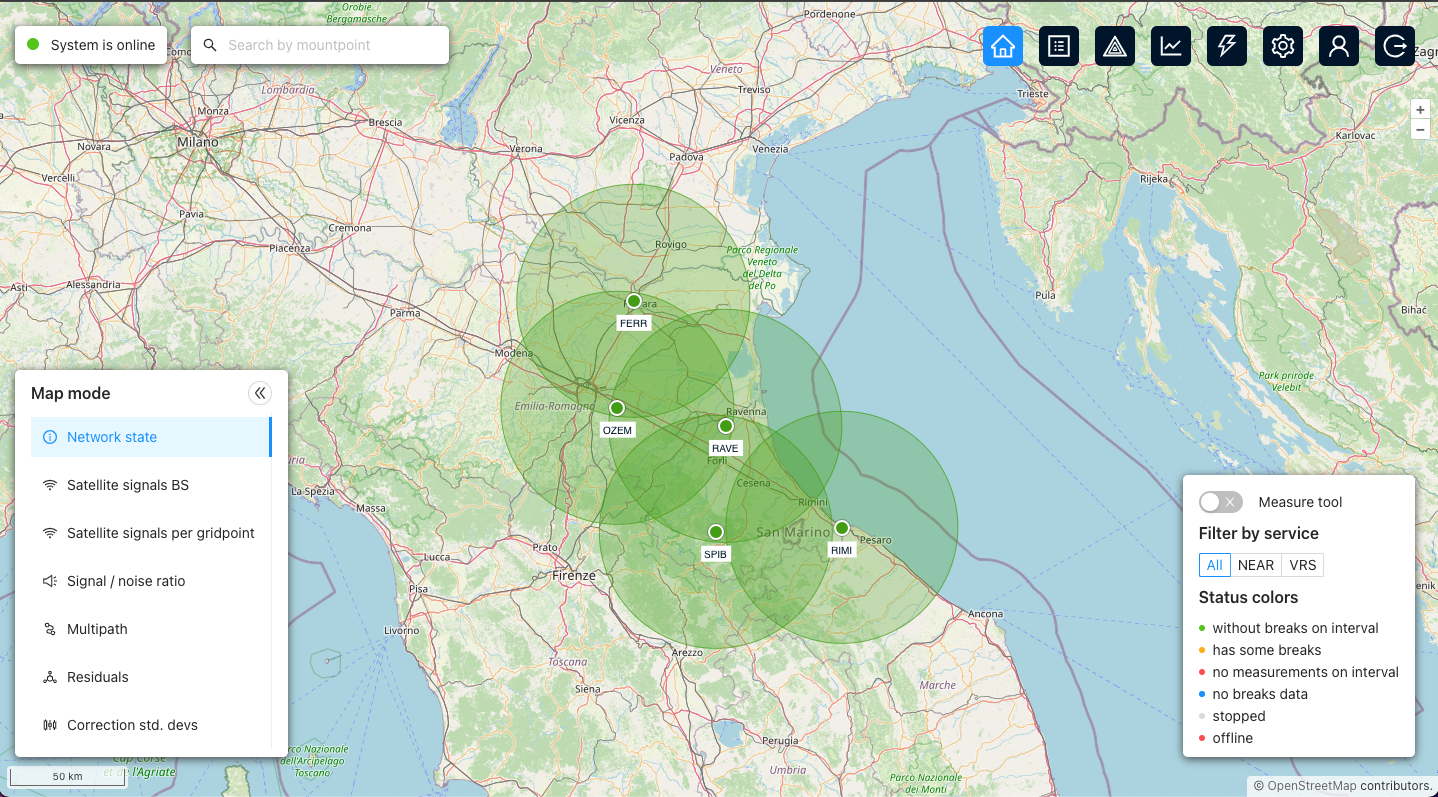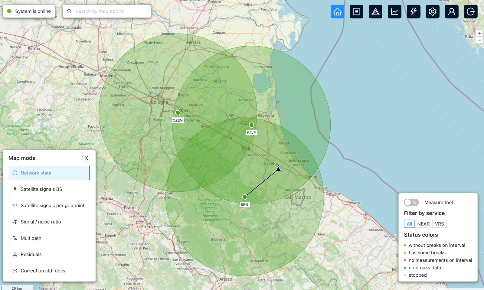 Attualmente sono operative cinque stazioni nella sola modalità NRTK sia in NEAREST, VRS e PPP-RTK: