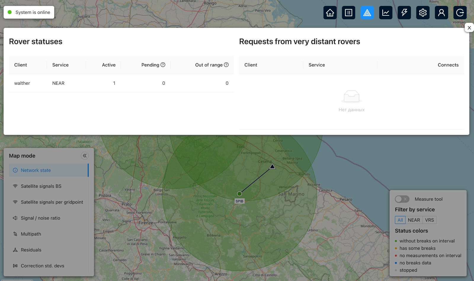 Qui sotto uno screenshot della rete con un rover collegato in RTK nella modalità NEAREST alla stazione SPIB visibile dalla figura 1.