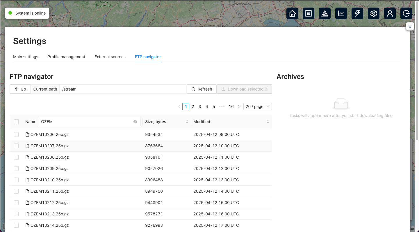 La rete registra file orari zippati di ogni singola stazione liberamente scaricabili previa registrazione